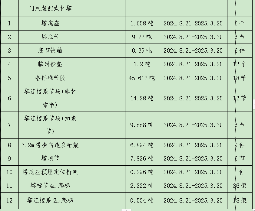 1.2.1項目內容:懸拼鋼拱架及其附件的租賃及采購。