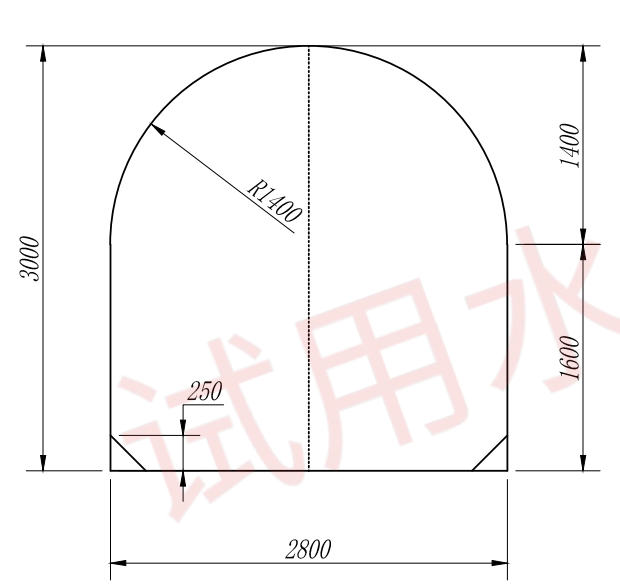B型斷面:R1400/2.8m*3m-12.1m液壓式鋼模臺車2套。