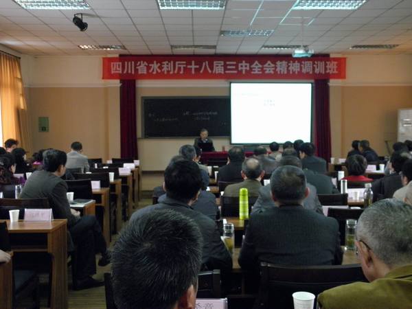 為強化各級黨政干部深入理解十八屆三中全會精神,4月2日至5日、4月9日至12日,工程局局級黨政領導干部先后分兩批參加了省水利廳十八屆三中全會精神調訓班培訓。 此次干部調訓由水利廳人事處負責組織,培訓地點在四川水利干部學校。培訓班邀請了四川省委黨校、省直機關黨校、成都市委黨校的知名教授授課。培訓內容包含黨的十八屆三中全會精神解讀、省委十屆四次全會精神解讀、習近平總書記系列講話精神及重要論述專題講解、黨的群眾工作方法創新等內容。