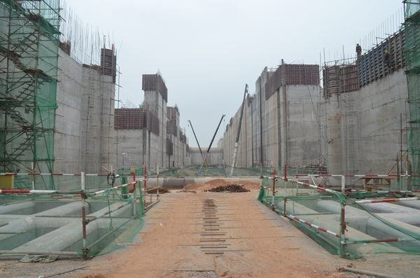 發電廠房進水口橋機安裝船閘全景閘壩上游閘壩下游