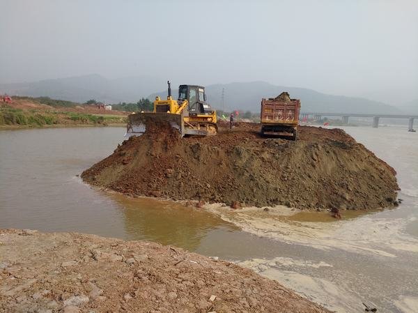 金堂縣沱江盤龍寺攔河閘工程一期圍堰順利合攏