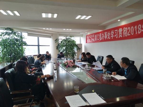 2018年4月4日,局都江堰市辦事處召開職工大會,學習貫徹工程局2018年工作會精神。會議由局都江堰市辦事處黨支部書記孫代華主持。