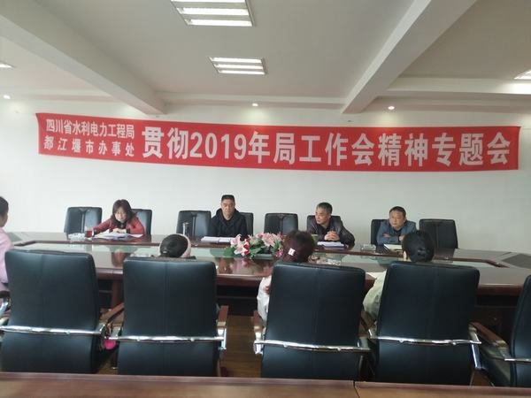 2019年4月12日,局都江堰市辦事處召開(kāi)職工大會(huì),傳達(dá)貫徹工程局2019年工作會(huì)議精神。會(huì)議由局都江堰市辦事處黨支部書(shū)記孫代華主持。