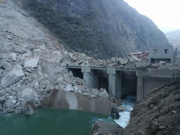 博瓦水電站首部樞紐工程于2019年11月初已通過下閘蓄水前的安全鑒定。2019年11月19日凌晨,在工程所在地發生3.9級地震,受地震影響,閘壩左右岸自然高邊坡發生高位巖體崩塌,大方量的左岸崩塌巖體自400米高處墜落,造成導流洞進口及取水口全部掩埋,上游河道嚴重淤堵,壩頂建筑物和金屬結構的全部損毀,施工現場的機械設備、材料等全部損毀掩埋,所幸無任何人員傷亡。閘壩1#、2#泄洪沖砂閘孔已被堵塞無法過流,只剩3#泄洪沖砂閘孔過流,庫區水位已雍高近6m,嚴重影響汛期河道安全行洪。