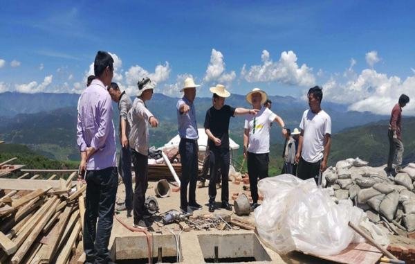 施工指導(dǎo)組與督戰(zhàn)組一行在阿尼木村清水池部位督導(dǎo)