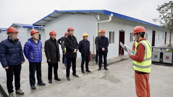 尹曉東一行抵達(dá)項(xiàng)目部后,經(jīng)體溫檢測和安全告知,在公司和設(shè)計(jì)院領(lǐng)導(dǎo)及項(xiàng)目部負(fù)責(zé)人的陪同下,首先察看了營地建設(shè),隨后前往觀景平臺(tái)觀看樞紐工程效果圖、岷江中游航運(yùn)規(guī)劃方案示意圖,聽取了工程平面布置及施工情況介紹,其后深入到左岸堤防、篩分站、拌合站、基坑上游鋼筋加工廠、發(fā)電廠房、泄洪沖沙閘等施工現(xiàn)場檢查指導(dǎo),詳細(xì)了解安全生產(chǎn)、進(jìn)度質(zhì)量、文明施工等相關(guān)工作情況。