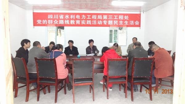 2013年11月10日下午,第三工程處在宜賓市筠連縣后溝水庫項目部召開了黨的群眾路線教育實踐活動專題民主生活會。局黨委副書記、紀(jì)委書記高本祥,勞動人事處處長舒建國,黨辦主任夏永紅到會指導(dǎo)。三處班子成員參加會議,后溝水庫項目部黨員職工及各科室主要負(fù)責(zé)人列席會議。會議由三處黨支部副書記周加利主持。