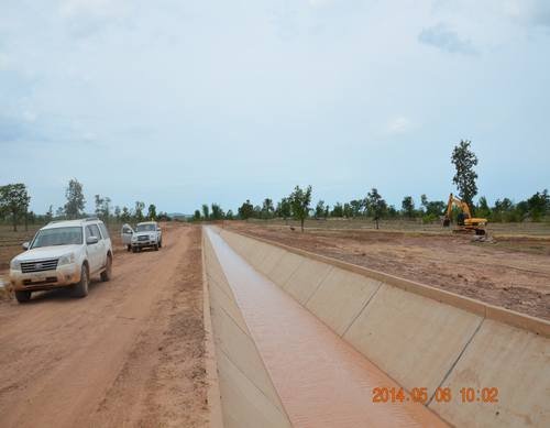 二枯期(2012.10~2013.6)是老撾色薩拉龍灌溉工程高峰期,是按期履約合同的關鍵節點。主要完成大壩左右岸壩段填筑到達到203米高程,超總計劃多填筑3米高程;溢洪道全部完工,達到完工驗收條件;取水口施工達到203米高程;引水渠主渠砼襯砌8182米,超額完成3682米,渡槽完成1號、2號、3號全部的砼澆筑,4號渡槽完成8個基礎及排架的砼澆筑。提前一個月達到二枯節點面貌,為順利完成老撾色薩拉龍灌溉工程施工任務打下了堅實的基礎。