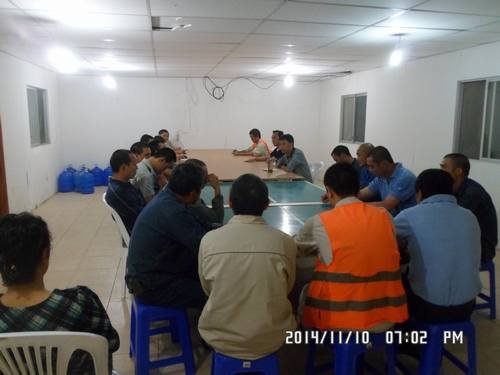 2014年11月10日,根據(jù)總體進度計劃各個節(jié)點工期要求,局厄瓜多爾TP項目部召開了“保安全、抓工期、促生產”動員大會。項目部經(jīng)理高代勝、主管經(jīng)營副經(jīng)理楊聰明、主管技術副經(jīng)理王安明、生產調度長陳軍以及出口工作面全體員工參加了會議。會議由楊聰明主持。