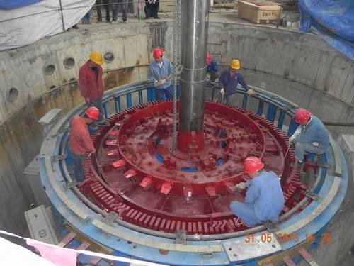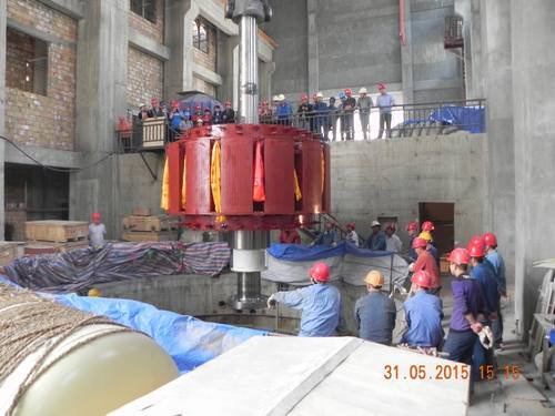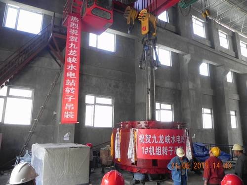 2015年5月31日15時(shí)28分,九龍峽水電站1號水輪發(fā)電機(jī)組轉(zhuǎn)子順利進(jìn)入1#水輪發(fā)電機(jī)組機(jī)坑,成功吊裝就位。