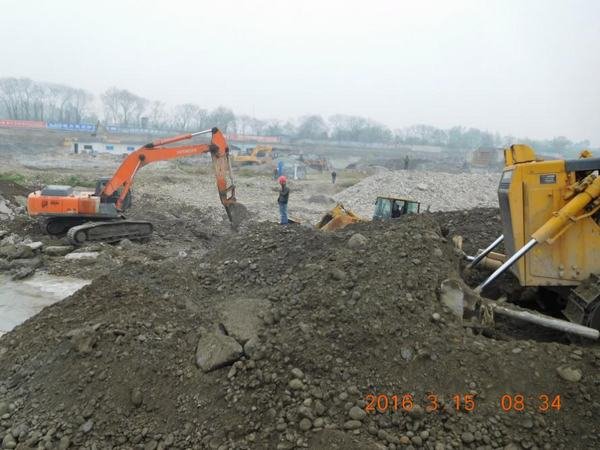 2016年3月15日上午7:30分,由局四處承建的西河順江堰引水樞紐整治工程開始進行二期導(dǎo)流圍堰施工作業(yè)。