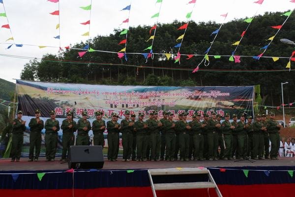 為慶祝首臺機組發電,南板地區管委會和911旅特別組織部隊、地方宣傳隊到電站施工現場進行慰問演出,勐瓦電站參建各方全體人員參加了這次慶祝活動。