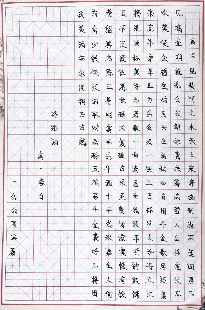 公司成立60周年書畫攝影書法類作品二等獎:將進酒