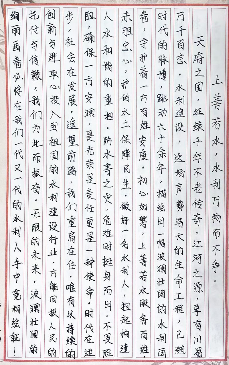 公司成立60周年書畫攝影書法類作品三等獎:上善若水,水利萬物而不爭